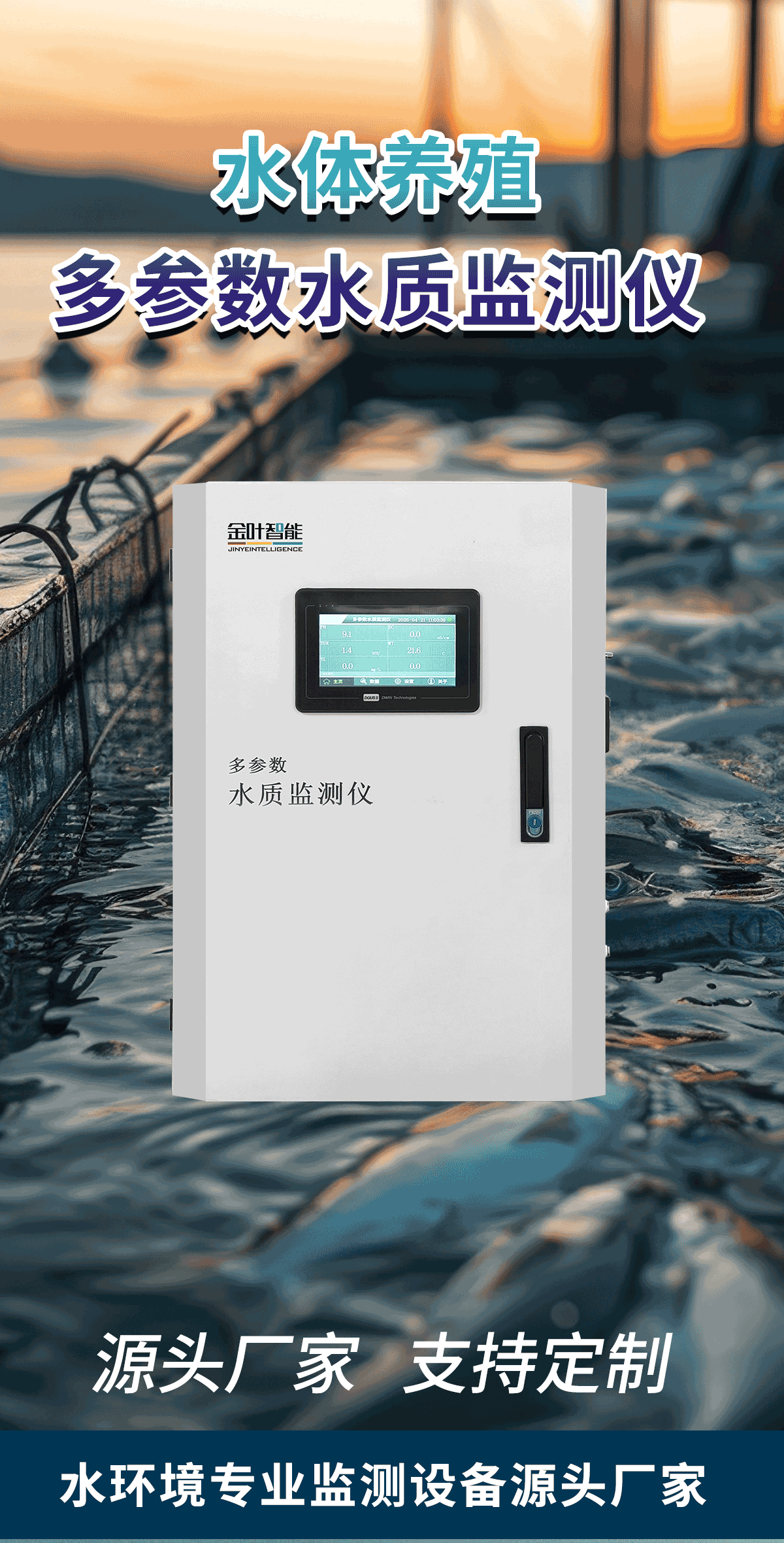 水产养殖多参数水质监测仪主要面向鱼塘、虾塘、工厂化养殖、育苗池、近海网箱等场景,主打长期稳定、免维护、智能联动,多参数一体化集成,高精度、抗干扰、漂移小, 高防水、强防腐、适应恶劣水环境。