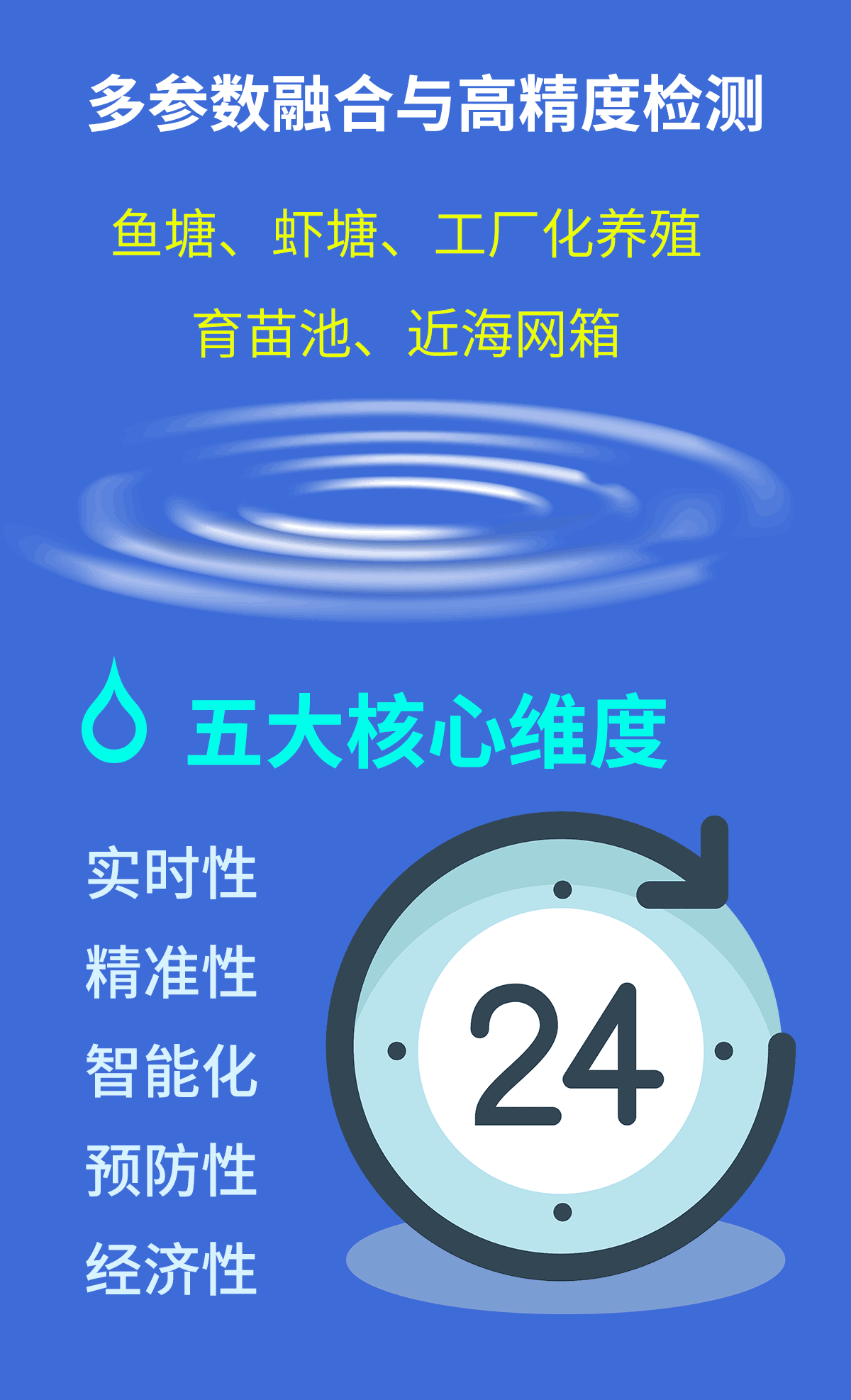 水产养殖多参数水质监测仪主要面向鱼塘、虾塘、工厂化养殖、育苗池、近海网箱等场景,主打长期稳定、免维护、智能联动,多参数一体化集成,高精度、抗干扰、漂移小, 高防水、强防腐、适应恶劣水环境。